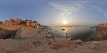 Řeka Ganga ve Váránasí přitahuje každý den tisíce lidí ke koupelím už od časného rána. Krásný žážitek je projížďka lodí po řece Ganze při východu slunce.