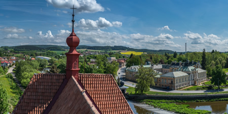 Na levém břehu Sázavy stojí zámek, pocházející z doby renesance, v průběhu staletí několikrát přestavovaný až do své dnešní zčásti novorenesanční a zčásti barokní podoby. Nejkrásnější místností zámku je rytířský sál, kde se konají svatby a jiné společenské události. Za zámkem se rozprostírá anglický park s četnými romantickými zákoutími a dvěma rybníky, z nichž jeden zdobí skalnatá strž s Čertovým mostem.